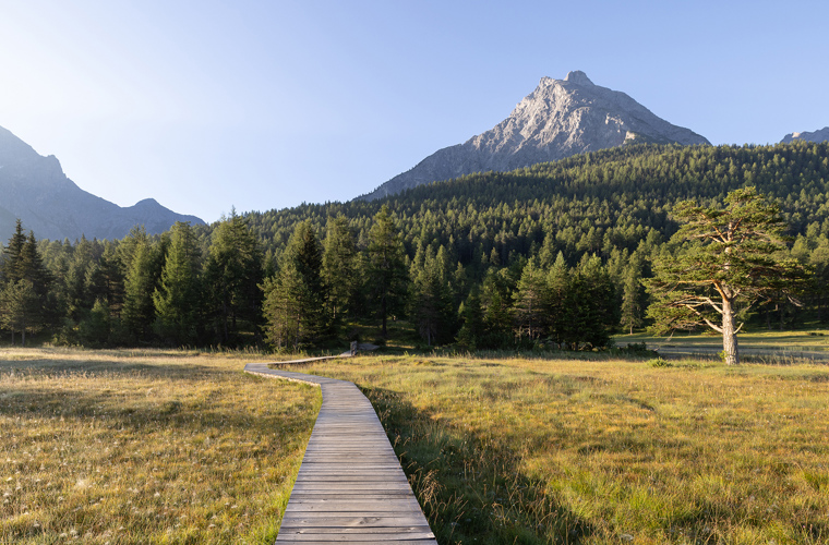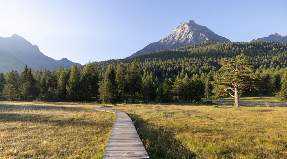 Culture, nature and history in the Lower Engadine – our hiking week from 28.6. – 4.7.2026 with 6 nights' accommodation, sightseeing, hikes, half board, bus, train, swimming and mountain railway included.